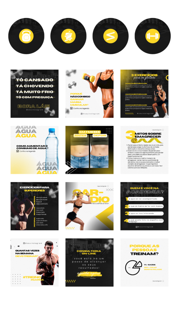 + de 100 posts PRONTOS e 100% editáveis para PERSONAL TRAINER!